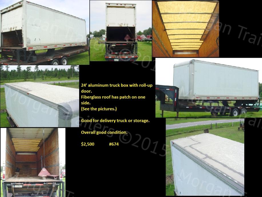 | Supreme Aluminum truck box with roll-up door & aluminum floor. 8'W x 24'L. Good overall condition. $3,000 #1102 |